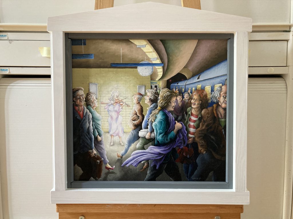 Olja på duk. 6 000:-. Bellmans Epistel 25 som börjar med Blåsen nu alla hör böljorna svalla…